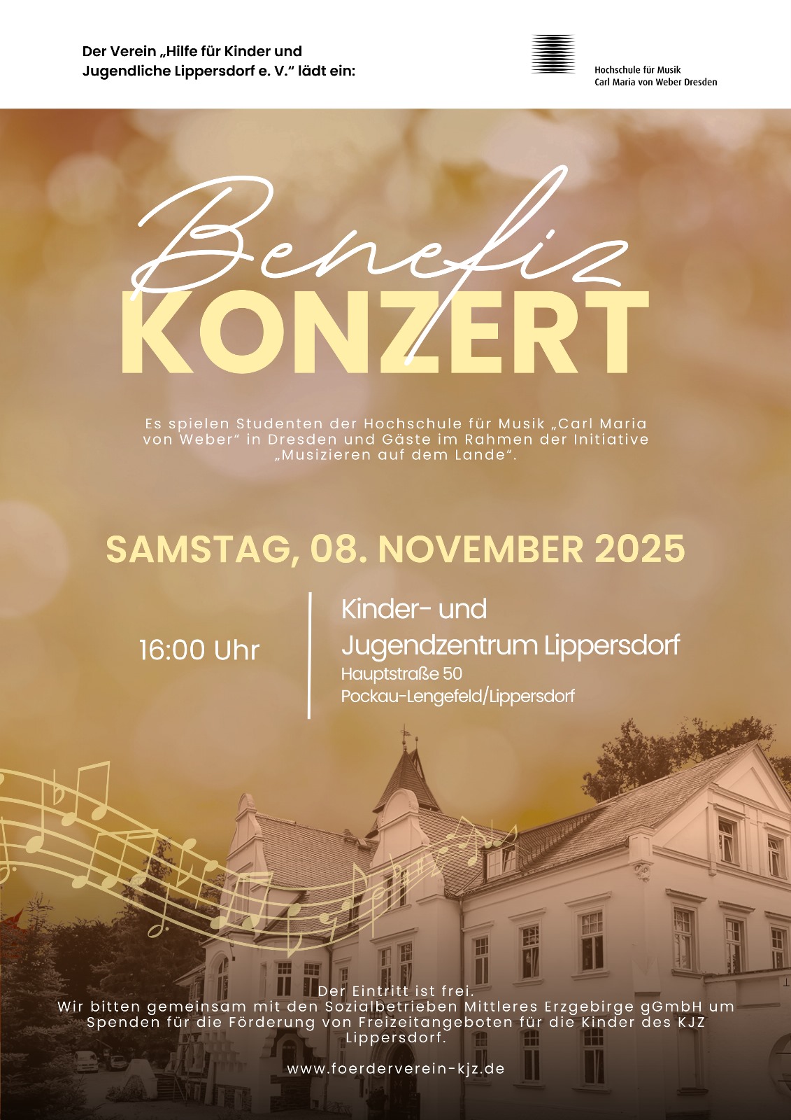 Der Verein „Hilfe für Kinder und Jugendliche Lippersdorf e. V.“ lädt zu einem Benefizkonzert am